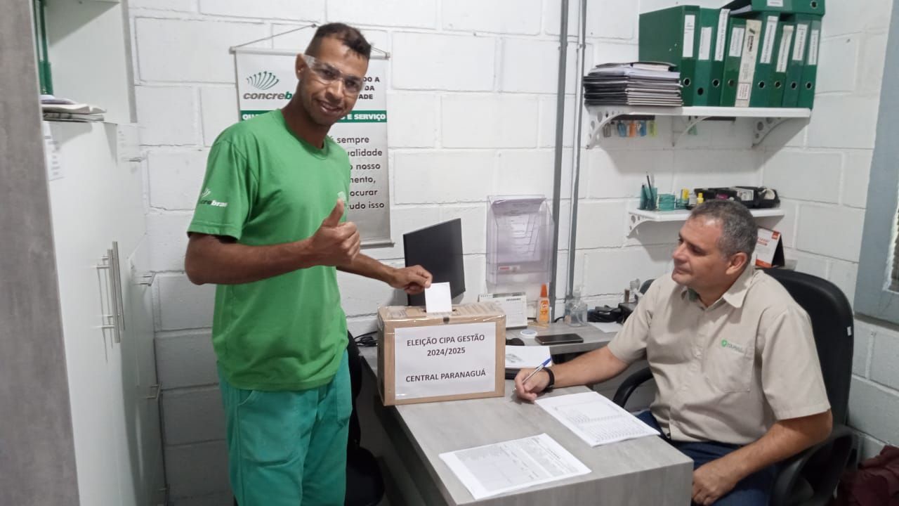 Diretor Silvio, Diretor Jonathan e Assessoria do SINTRACON estiveram hoje na empresa CONCREBRAS apresentando o Sindicato e participando das Eleições para CIPA.