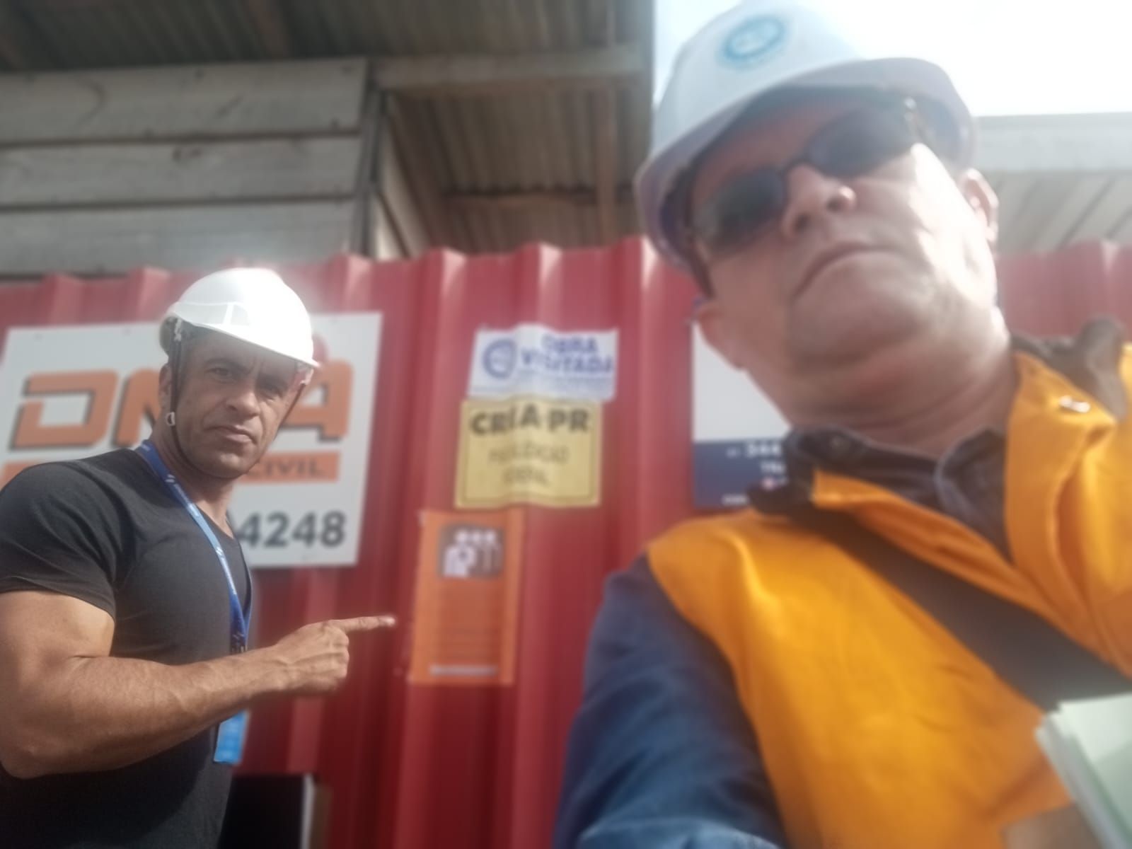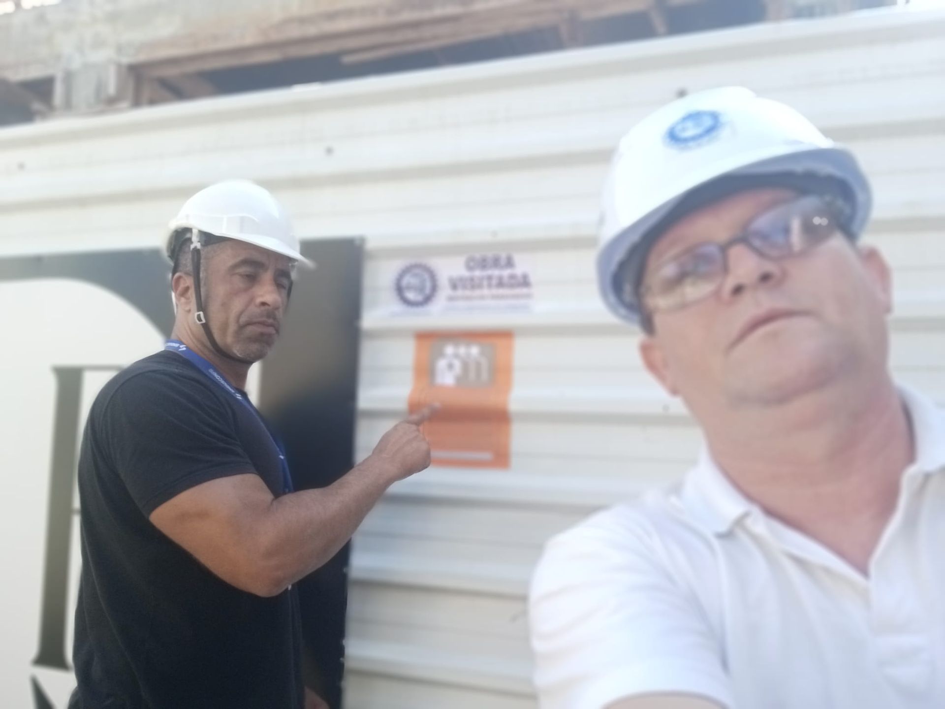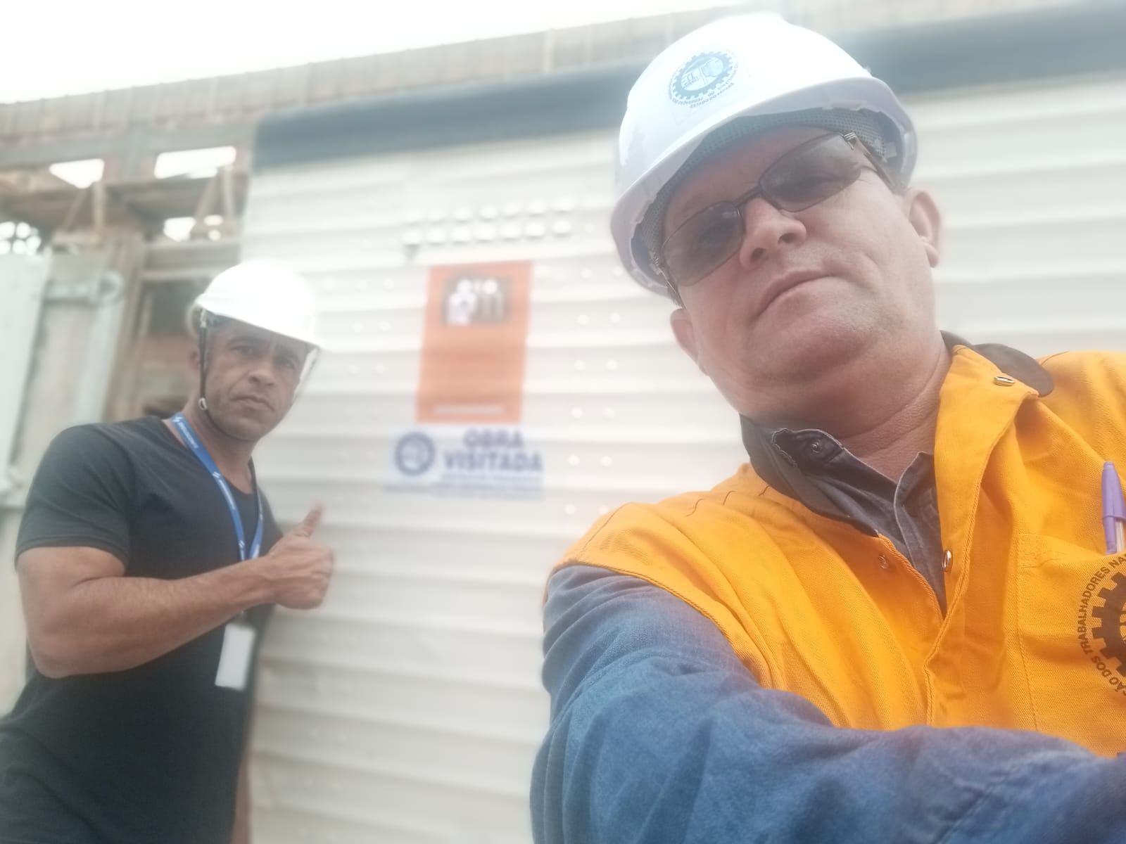 O presidente do SINTRACON PARANAGUÁ, Edemilson Gonçalves, juntamente com o Técnico de Segurança do Trabalho Companheiro César, estiveram percorrendo obras na cidade de Paranaguá .