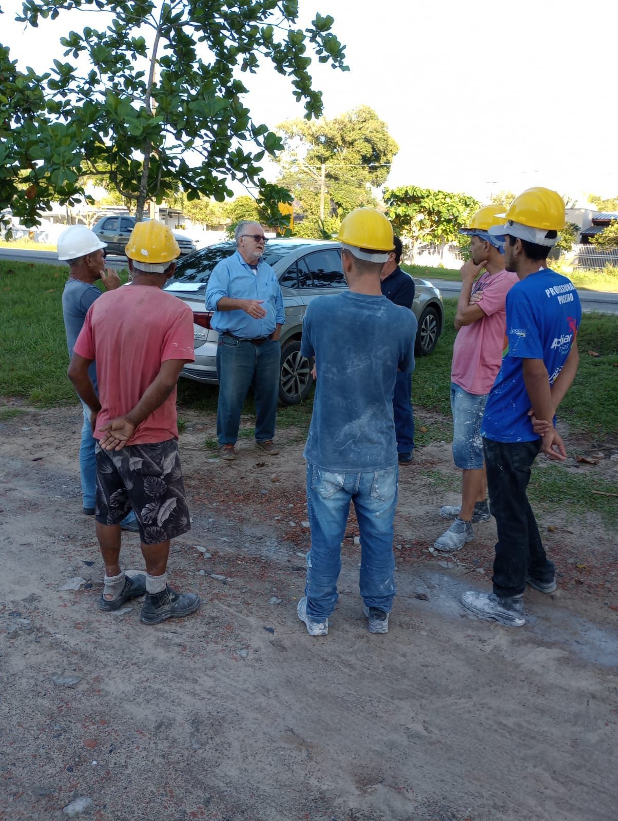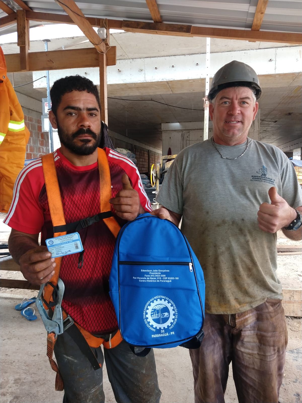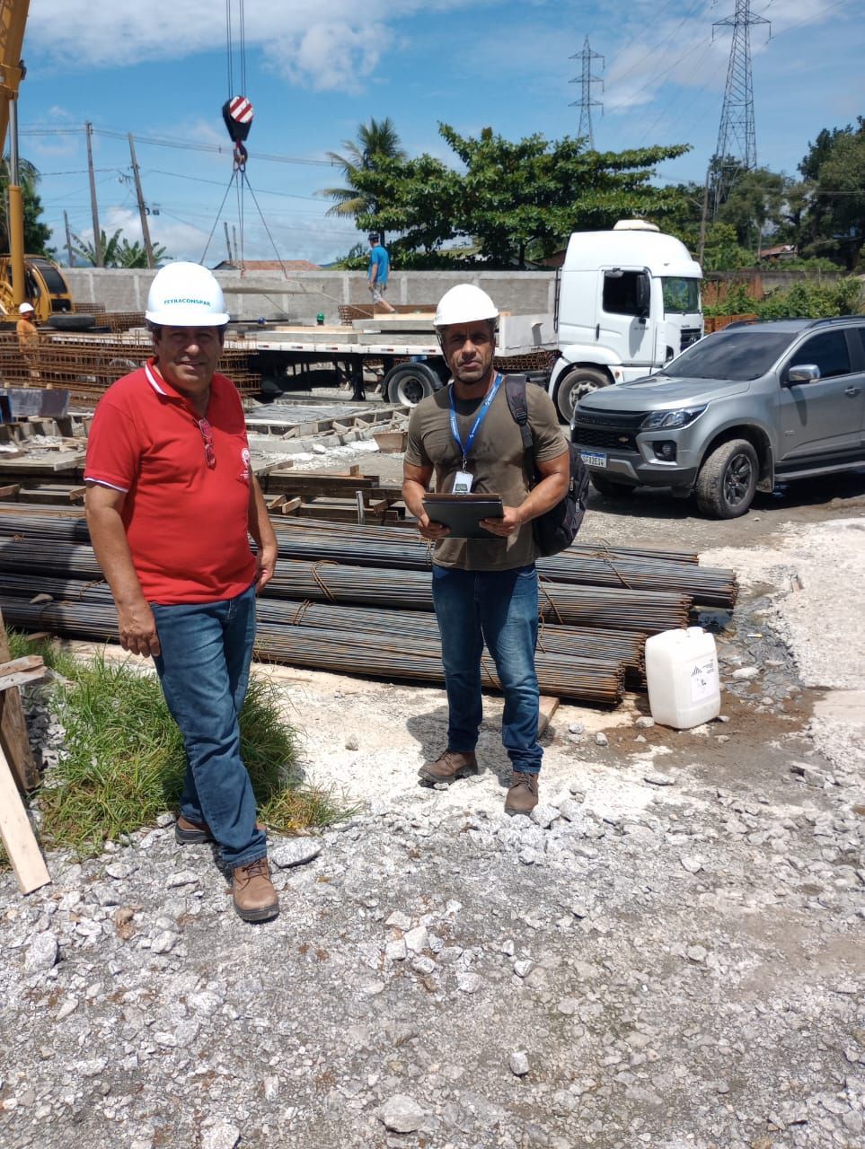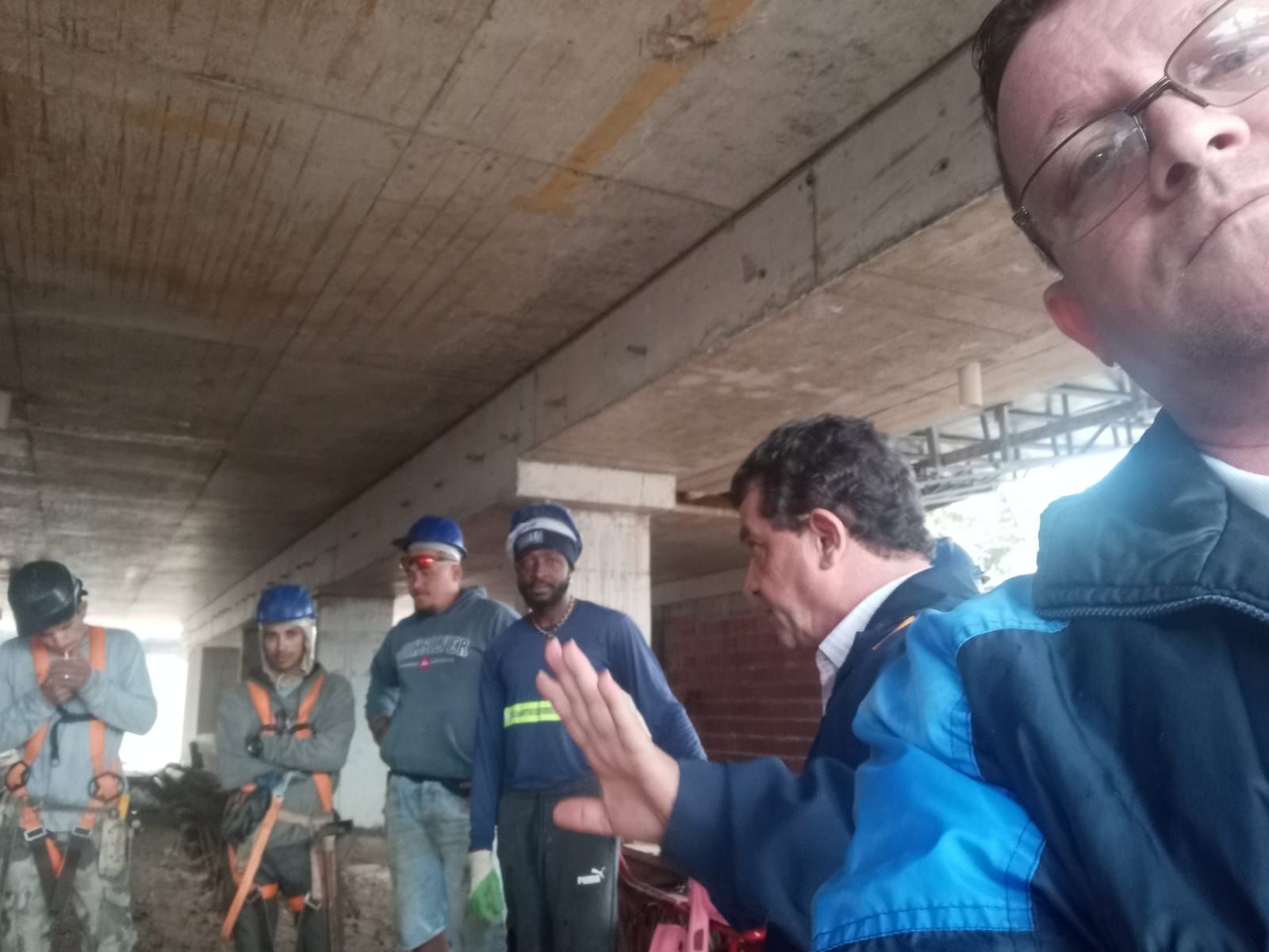 O presidente do SINTRACON PARANAGUÁ, Edemilson Gonçalves, juntamente com o Técnico de Segurança do Trabalho Companheiro César, estiveram percorrendo obras na cidade de Paranaguá .