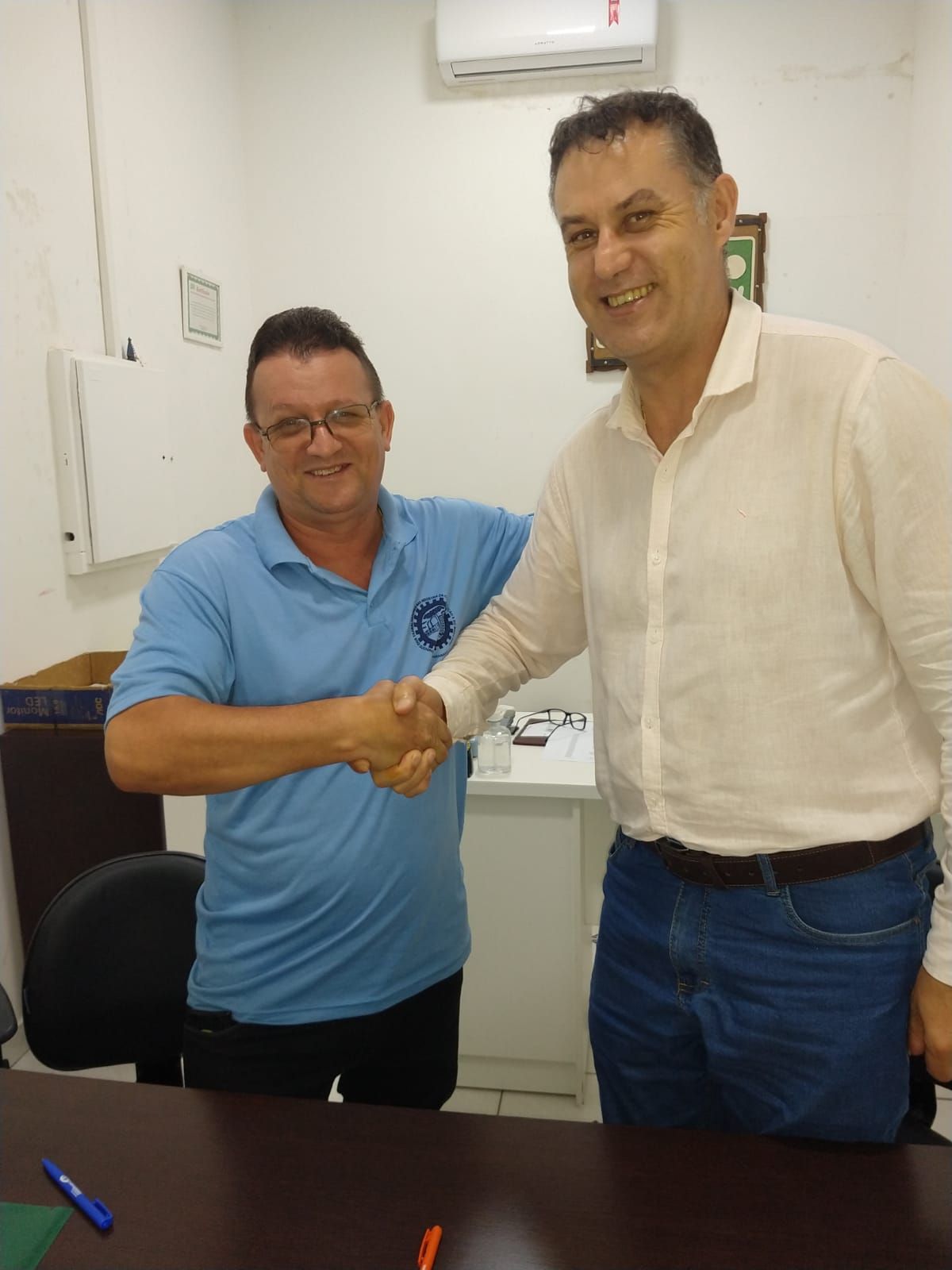 Na foto, nossa Diretora Deise, apresenta o novo filiado Sr Elias do Carmo da empresa Aguiar Ramos