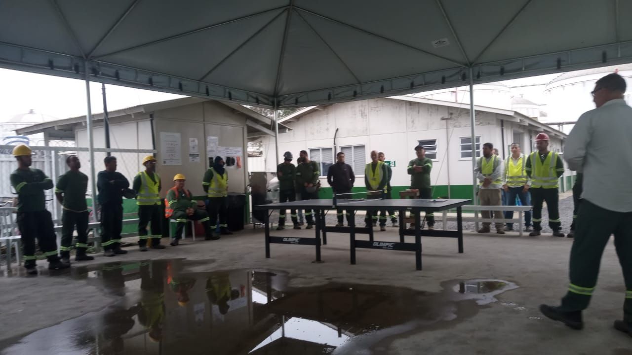 A atividade ocorreu nas portas da Empresa após o expediente de Trabalho.