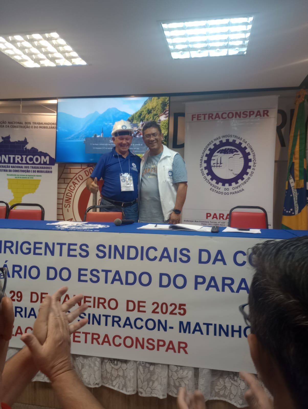O SINTRACON PARANAGUÁ está presente na figura de seu Presidente e seu Secretário Geral, companheiros Edemilson e Rogério.