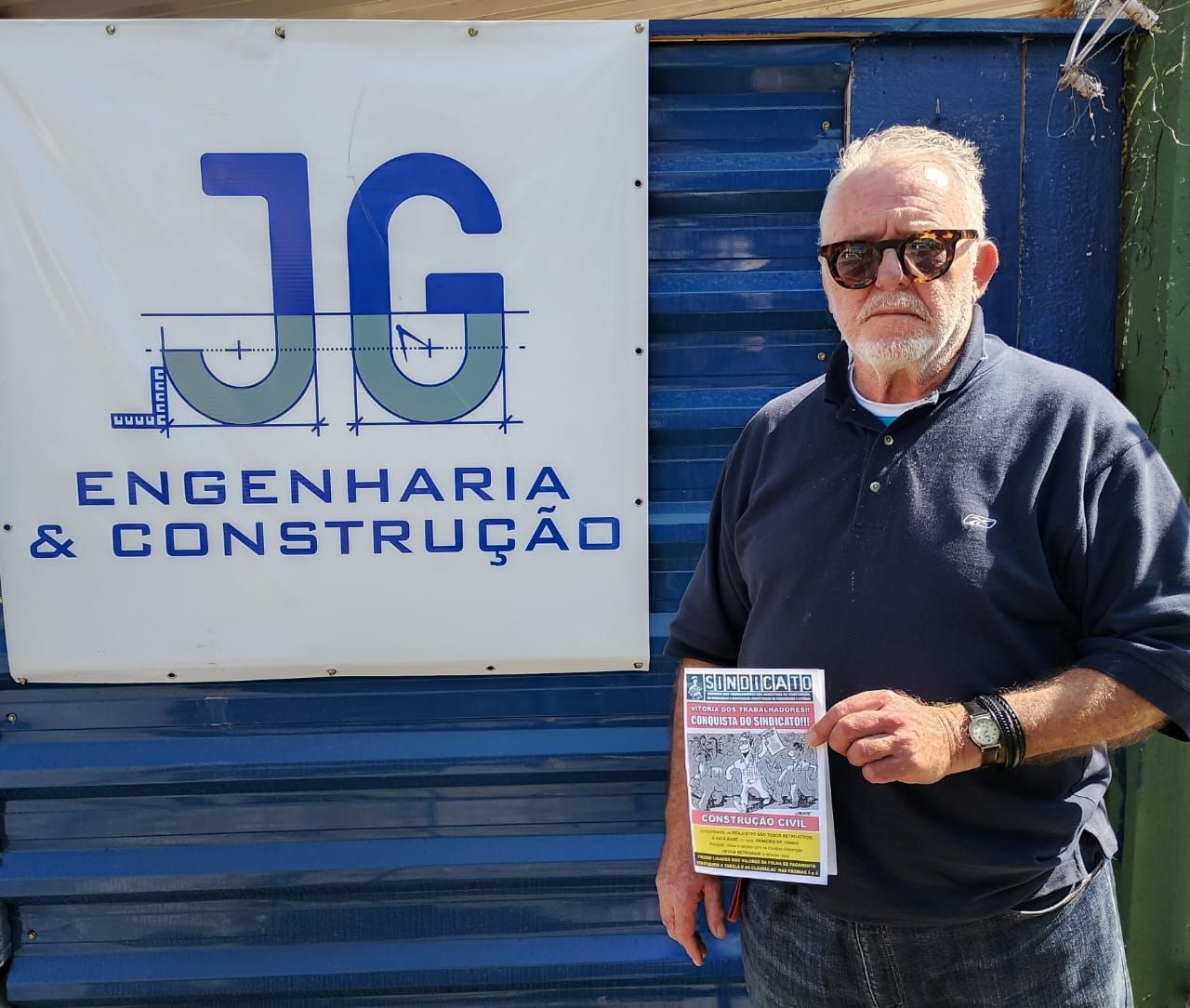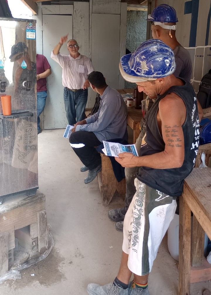 No trabalho de contato com TRABALHADORES nos locais das obras, para conversar, debater e distribuir o BOLETIM da Entidade.