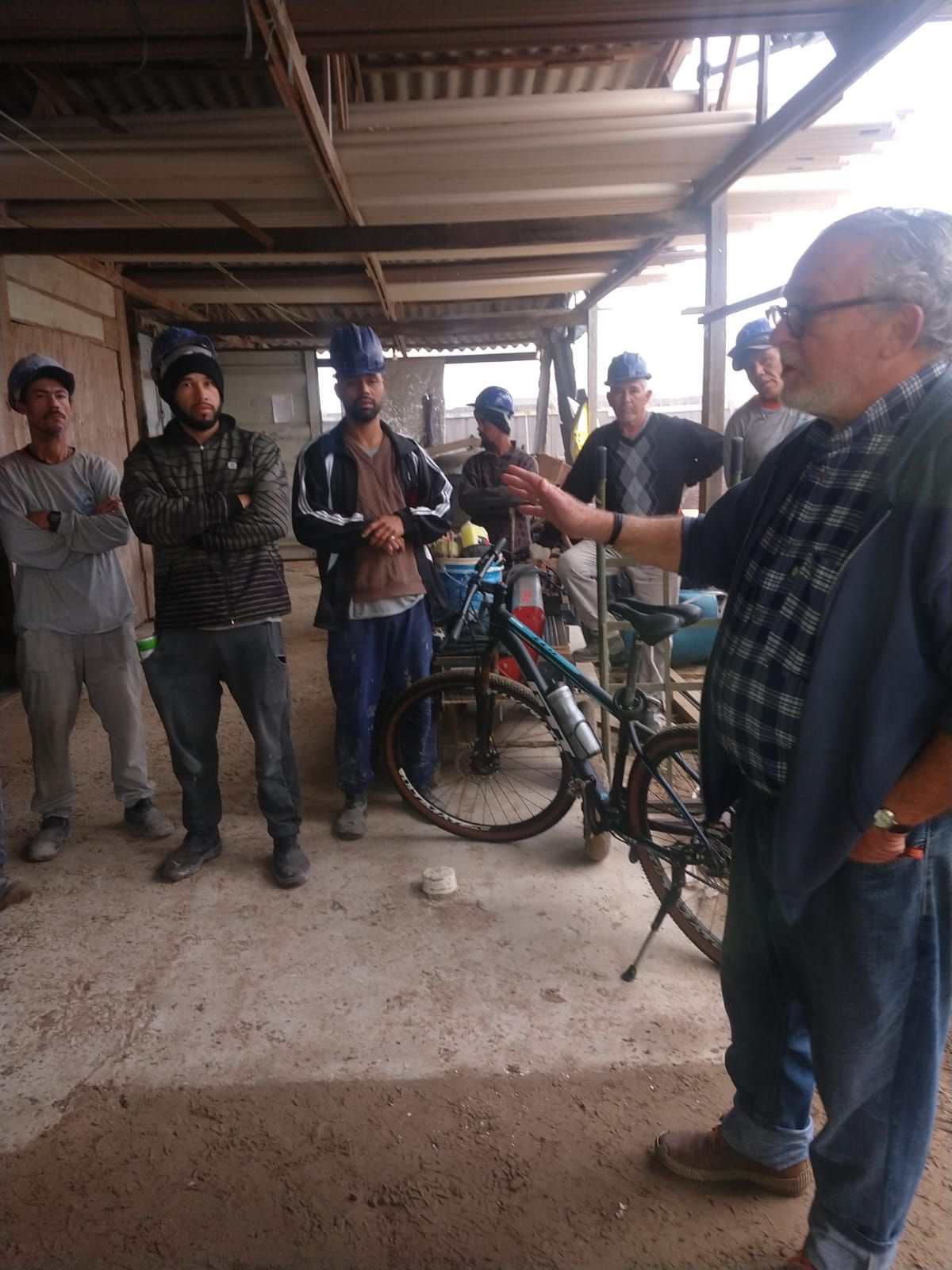 No trabalho de contato com TRABALHADORES nos locais das obras, para conversar, debater e distribuir o BOLETIM da Entidade.